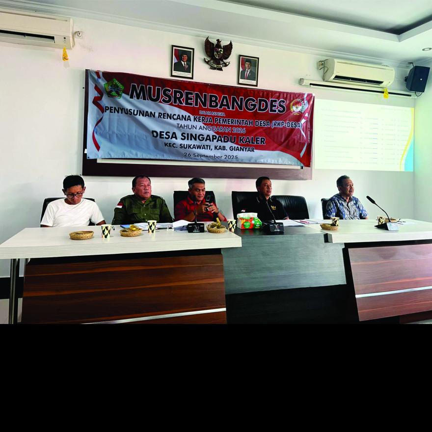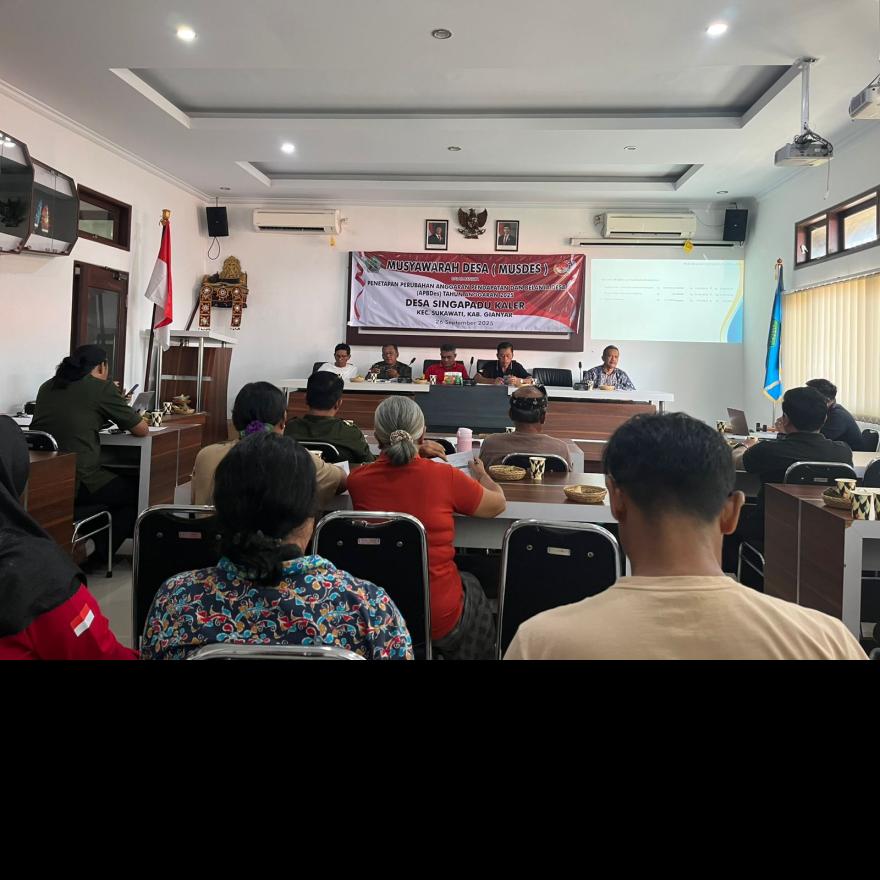Musdes Pembahasan Rencana Anggaran Pendapatan dan Belanja Desa Tahun 2025 dan Musrembangdes tentang Pembahasan Rancangan RKPdes tahun anggaran 2026 yang diselenggarakan di kantor Desa Singapadu Kaler pada hari Rabu Tgl 26 jam 13:00 wita