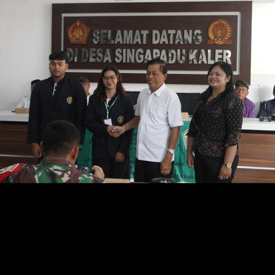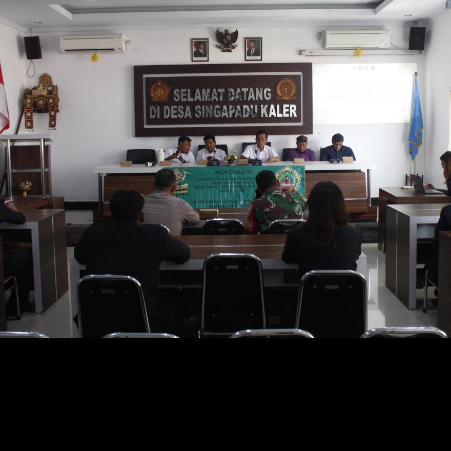 PEMBUKAAN KKN TEMATIK PEMBERDAYAAN MASYARAKAT MELALUI KKN UNIVERSITAS MAHASARASWATI DENPASAR YANG DISELENGGARAKAN DI RUANGAN SHABA MANDALA KANTOR DESA SINGAPADU KALER